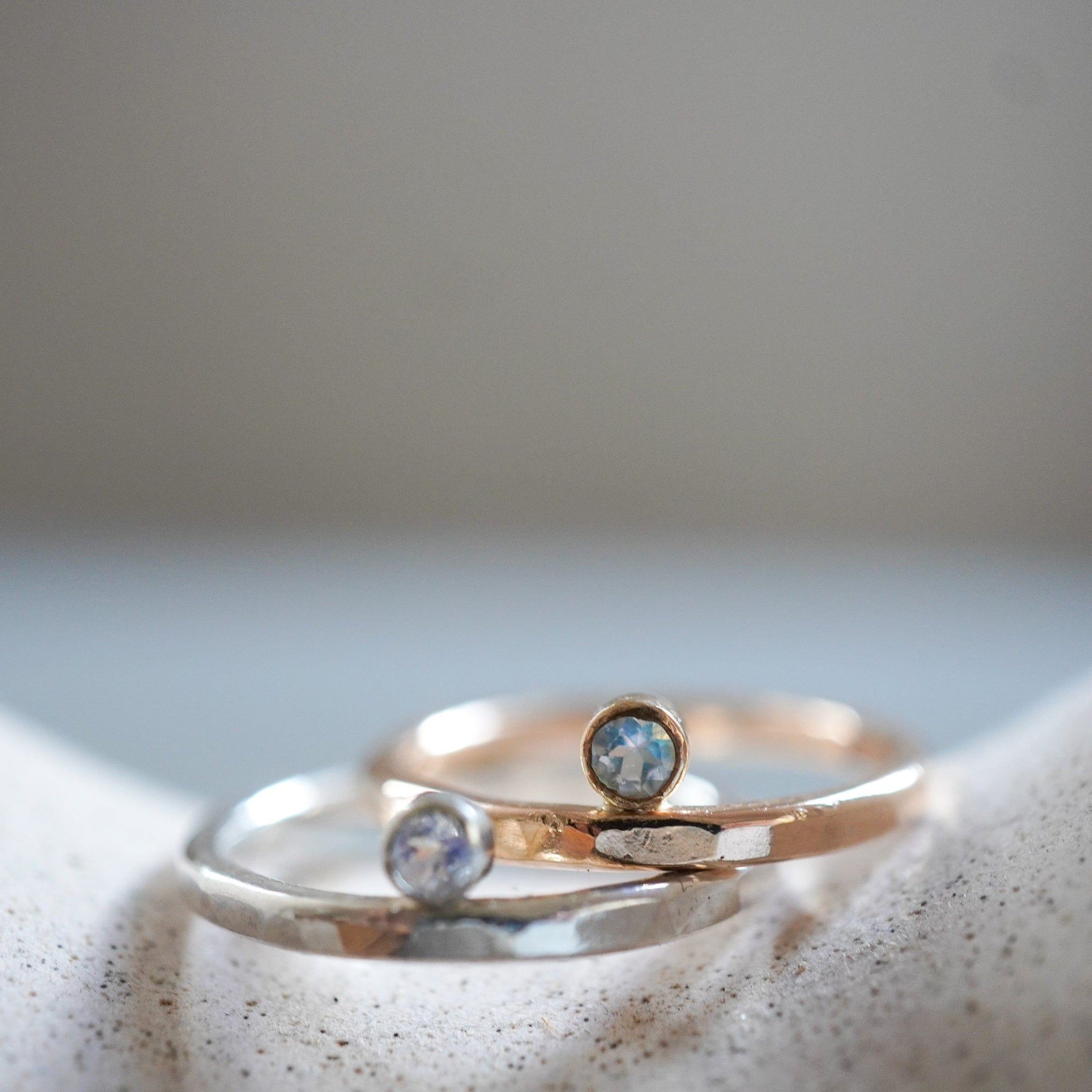Part of our new Starbound Collection, The Moonbeam Ring is a glowy moonstone set onto our classic Birch Ring. This versatile ring can be worn with the stone facing towards you or toward the world!